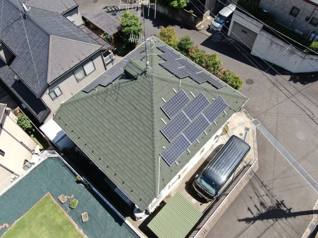 太陽光パネルが取り付けられているため、今回の工事は屋根の塗装ではなく、耐久性の高い屋根にし、長期的に屋根メンテナンスが必要のない屋根にしたいというご希望がありました。