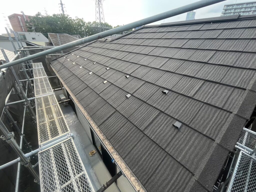 16.屋根材の嚙み合わせに問題がないか、その他傷や汚れがないかの最終点検をしたら施工完了です。