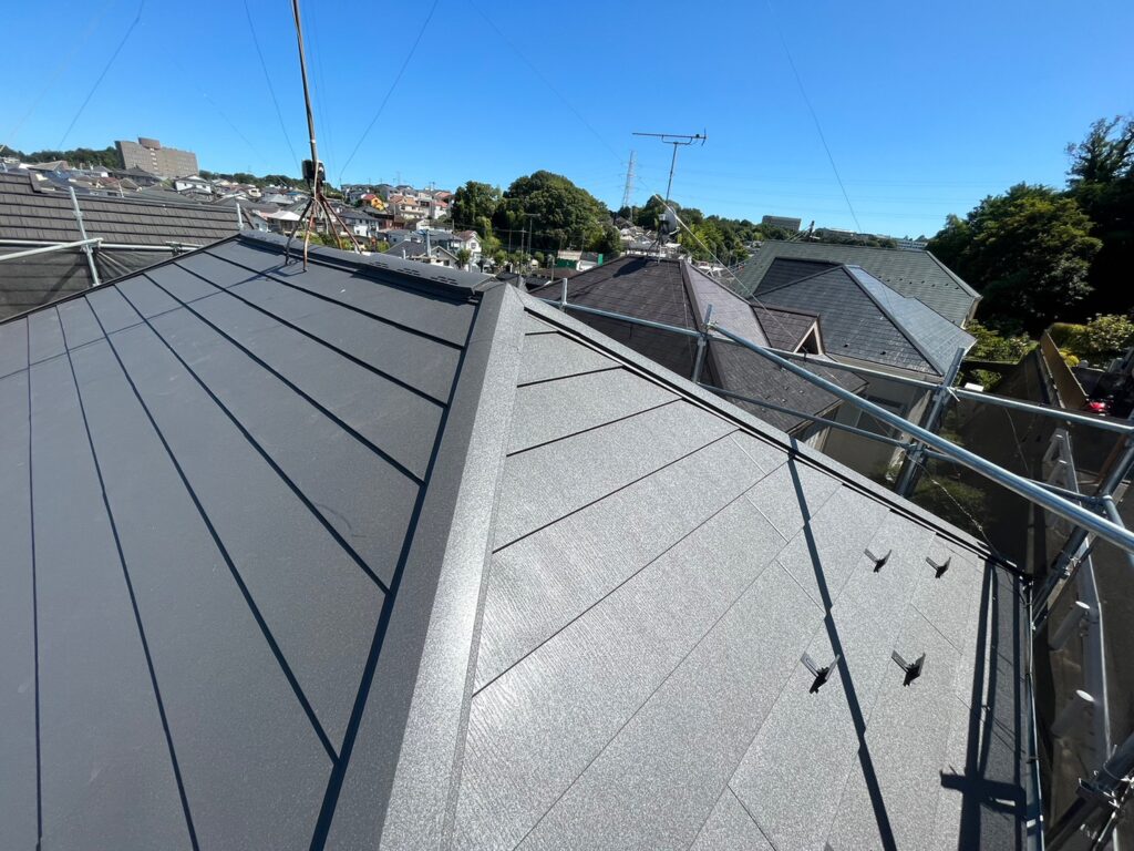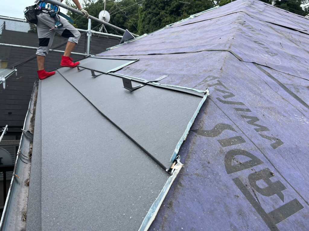 屋根材の断熱性の高さと、屋根材の軽さで評価の高いアイジー工業のスーパーガルテクトを選んでいただき、施工させていただきました。